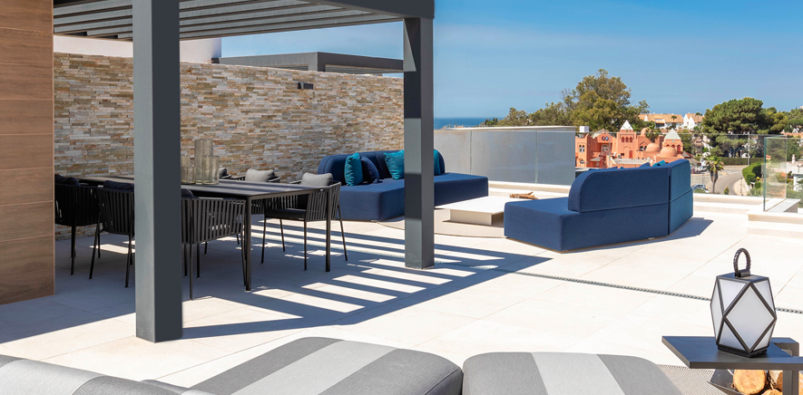 The residential complex, which has a total of 72 units with 2, 3 and 4 bedrooms, is located in the exclusive location of Cabopino, known as the “Oasis of the Costa del Sol”.This homes are project that is located on the first line of golf and offers spectacular views of the sea,they present two types: penthouses with a solarium and ground floors with a private garden, all of them characterized by their spacious, perfectly oriented rooms, their large windows and their magnificent terraces. They also include a garage and storage room included in the price.