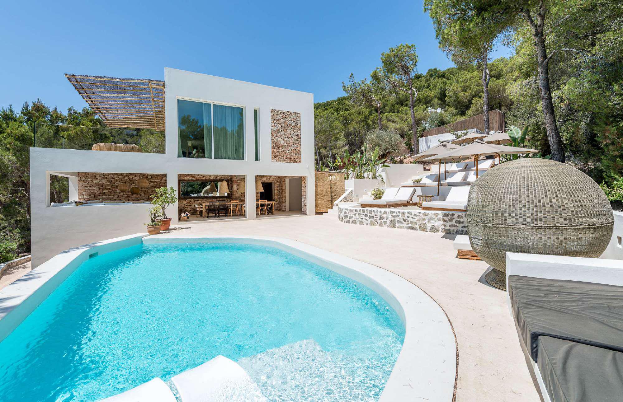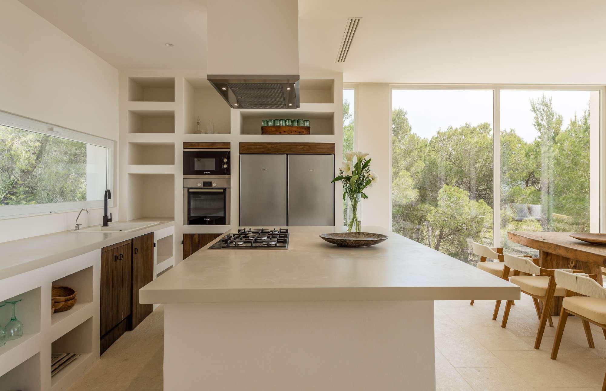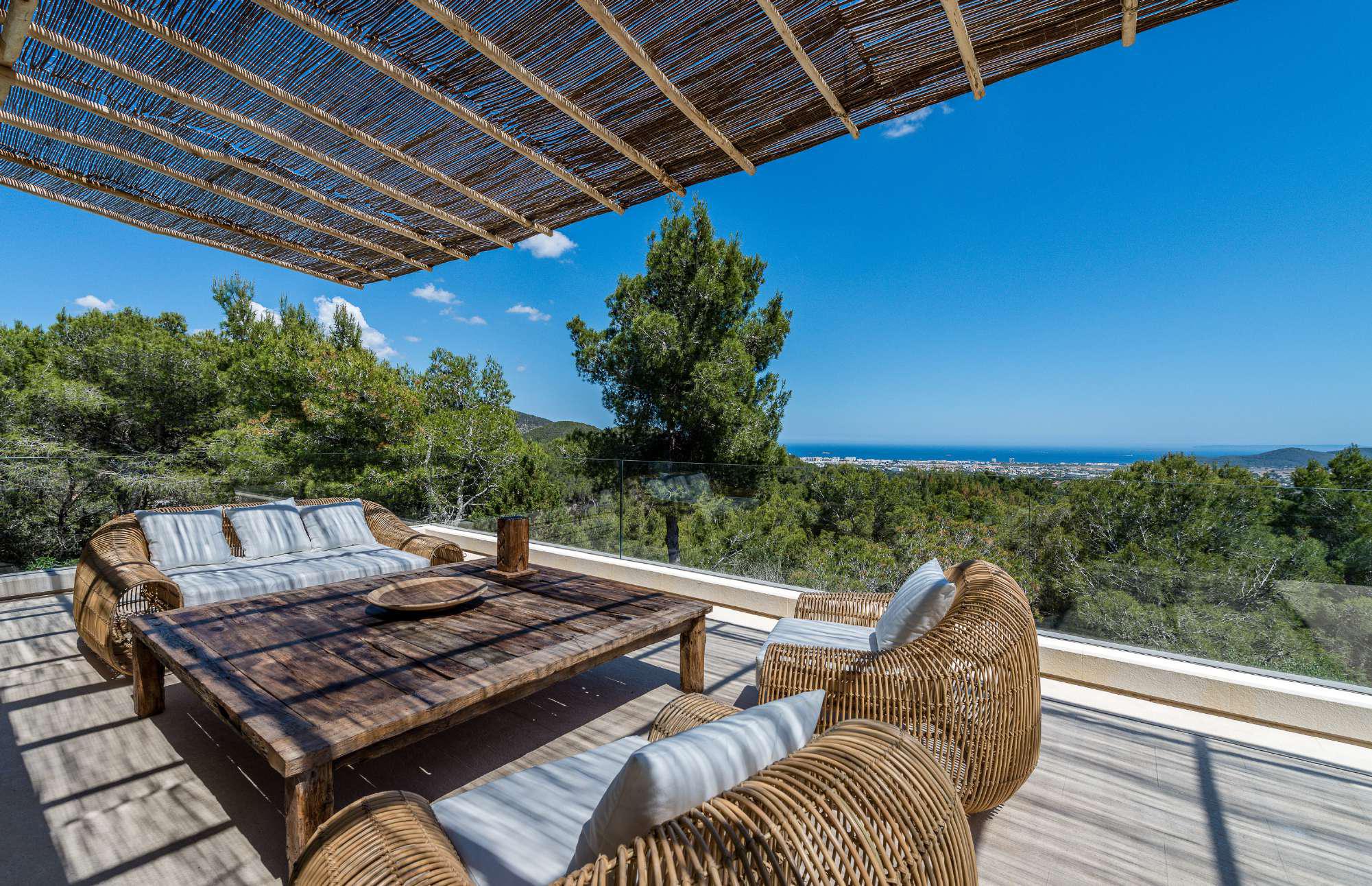 Ideally located off KM2 of San Josep road, this tasteful modern villa is designed for peaceful enjoyment, combining privacy, tranquility and luxury.
