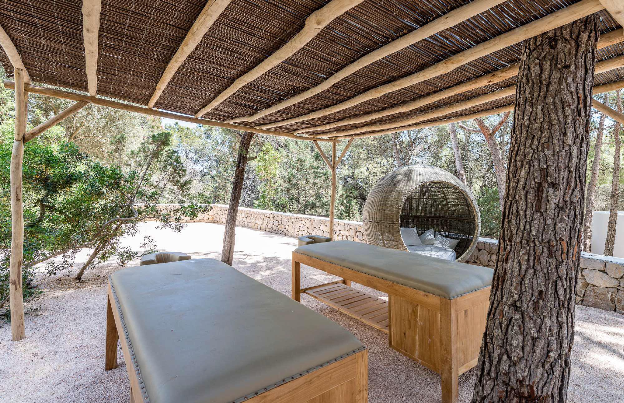 Stroll out to the pool area to find beach-sandy terraces for your sun loungers, chillout zones, an outdoor kitchen / BBQ and dining area with a large teak table that seats up to 14 people where guests can enjoy a meal, or just the ambiance of the illuminated pool and terraces at night.. all as nestled away from noise and traffic as the rest of the house.