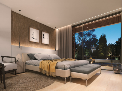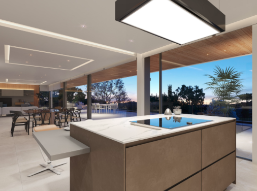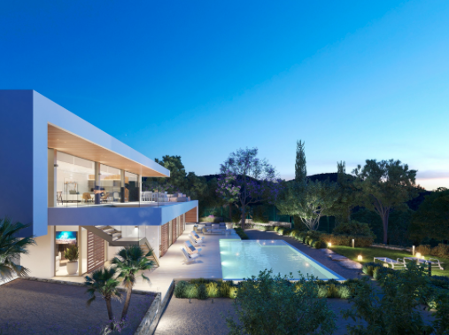 The villa has on the ground floor four bedrooms, each with private bathroom and access to the pool and garden. On the second floor there are two more bedrooms with bathroom, ideal for staff and guests. The open kitchen area with adjoining dining and living room invites you to relax. The house has domotic pre-installation that enables remote control of the air conditioning installation, as well as global switching on or off of the house, control of the blinds, and technical alarms for floods or smoke. It is equipped with climate control (for cooling and heating).