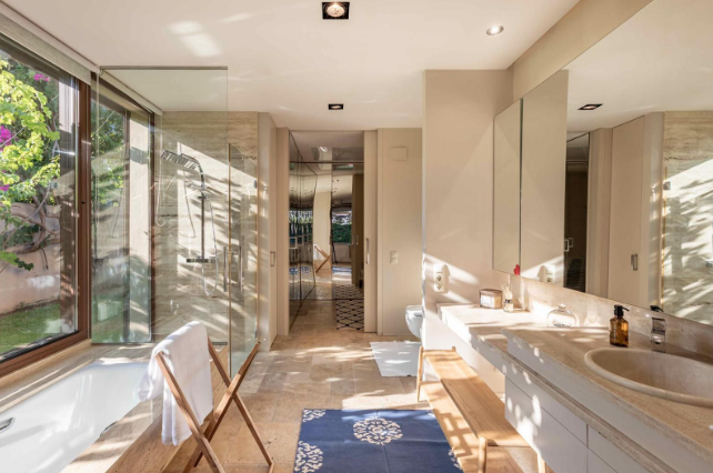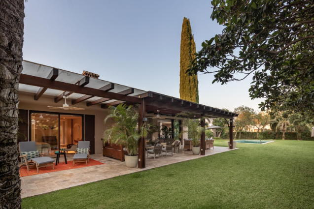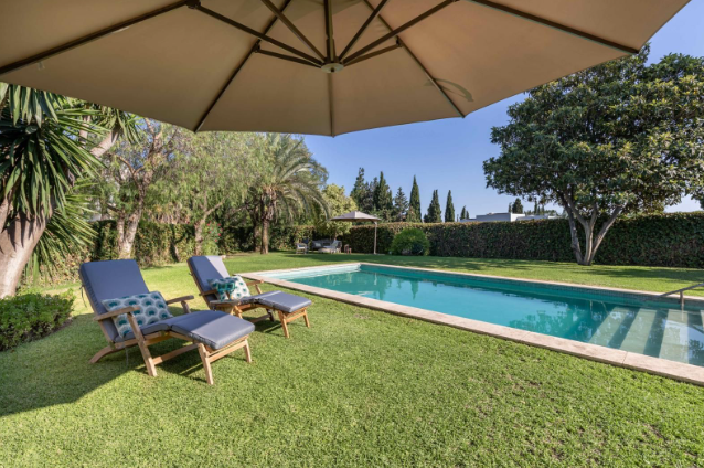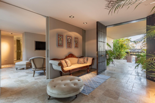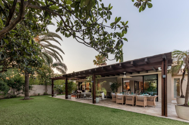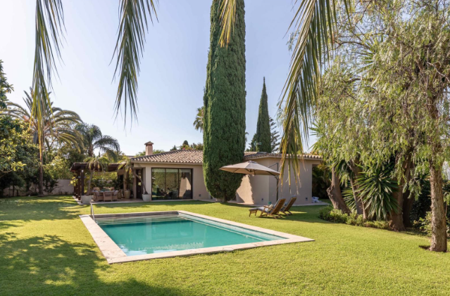 This stunning villa boasts a great location: the famous Nueva Andalucía neighborhood. This 3 double bedrooms, 1 single bedroom and 4 bathrooms gorgeous home is near many of the Marbella’s well known restaurants and entertainment hot spots. The home is 326 m² in size, built on a 1.670 m² plot. Just 15 minutes walking to Puerto Banus and 5 minutes driving to Las Brisas, one of the best golf courses. This villa features a grand entrance that leads to a large, spacious living room with a fireplace, ample dining area and fully equipped kitchen.The sun shines brightly in this house, throughout the morning and afternoon, due to the huge windows all over the property. There is plenty of space to enjoy the great sunny days around the chill-out, by the pool, to relax and enjoy a meal under its large and cozy covered porch. There is parking space for up to 2 automobiles. This is, indeed, a wonderful place to enjoy Marbella to its fullest