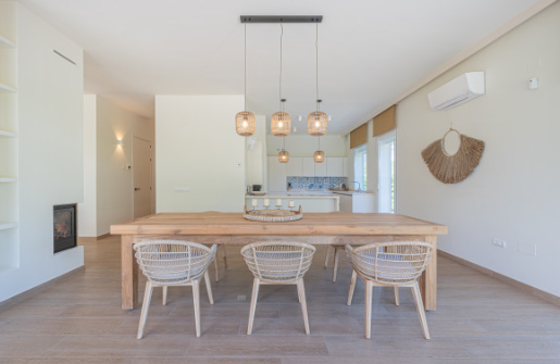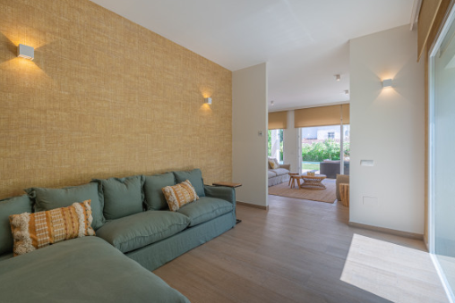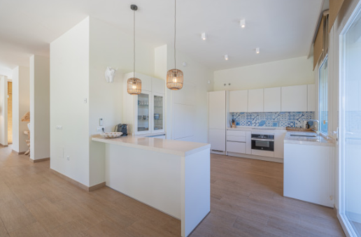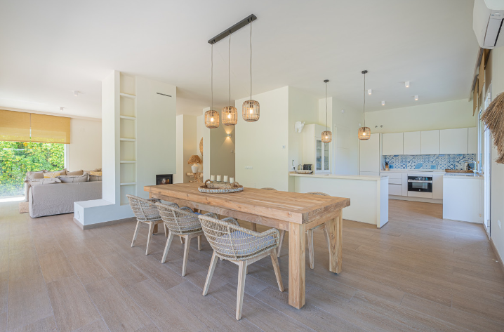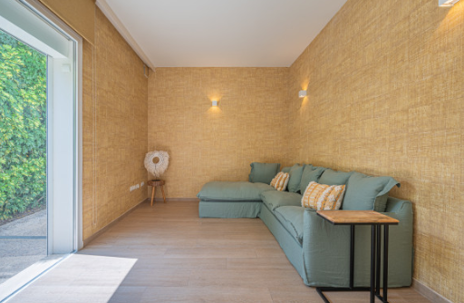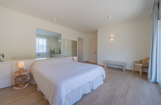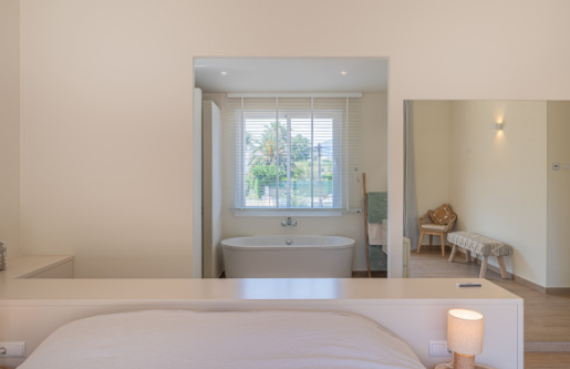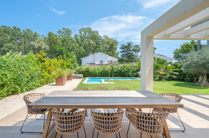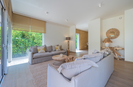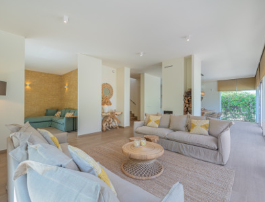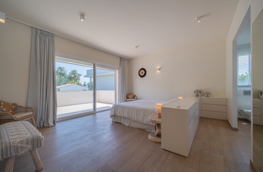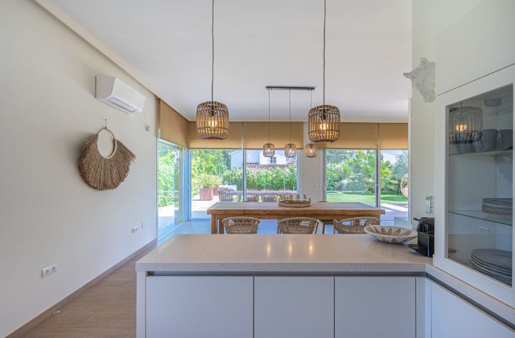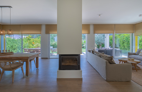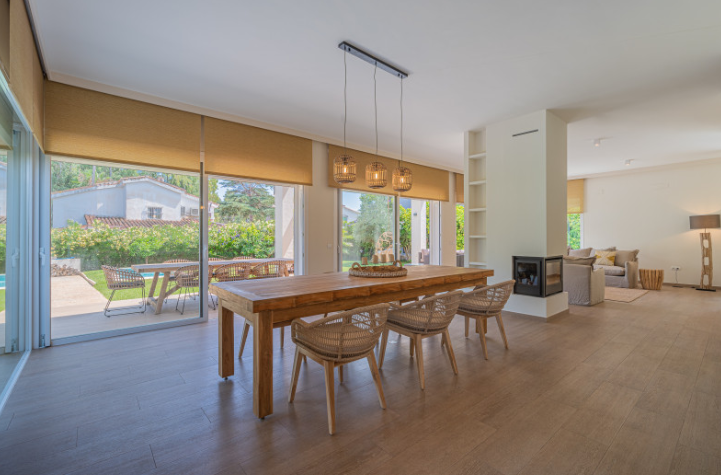 The south facing home is built on two levels and comprises of an entrance hall, guest cloakroom, open plan fully fitted and equipped modern kitchen, dining room and lounge with a double sided fireplace and direct access to the terrace, private garden and swimming pool. The upper floor consists of the large master bedroom suite with walk in closet and two further guest bedrooms with en-suite facilities.