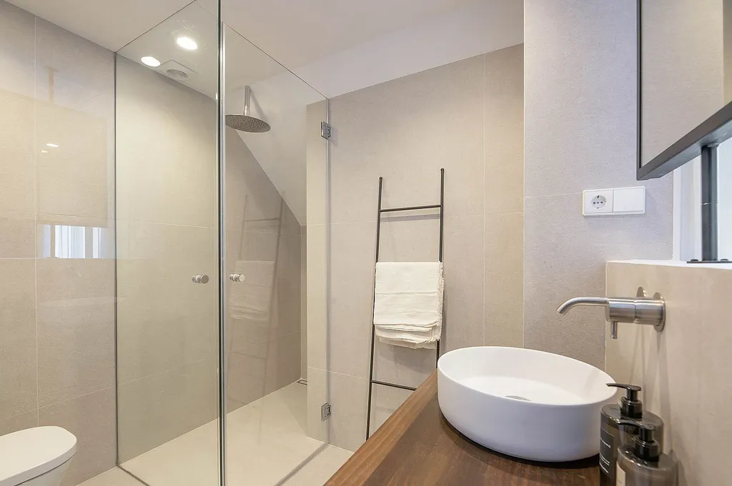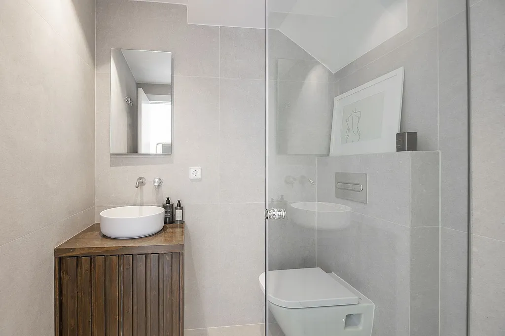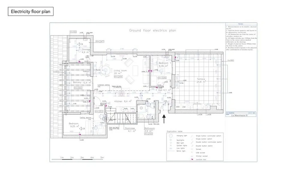 The apartment is divided into 3 bedrooms, 2 bathrooms, living room with open kitchen and wine room. There are also 3 terraces – east and west facing on the main floor and a third on the top floor – from the master bedroom. Parking included in the price.