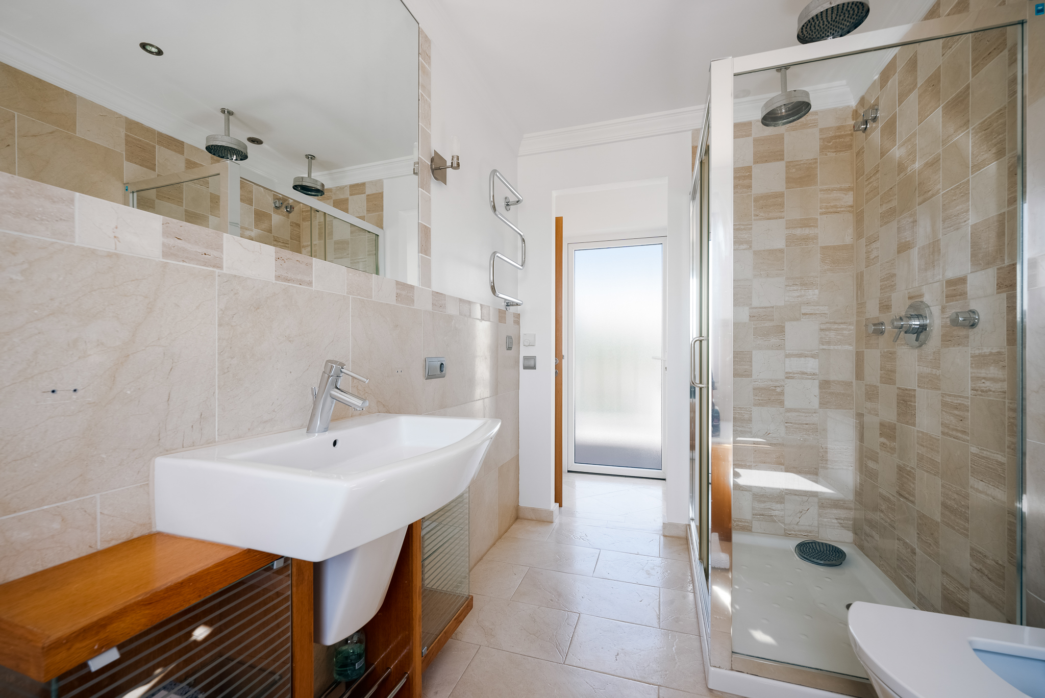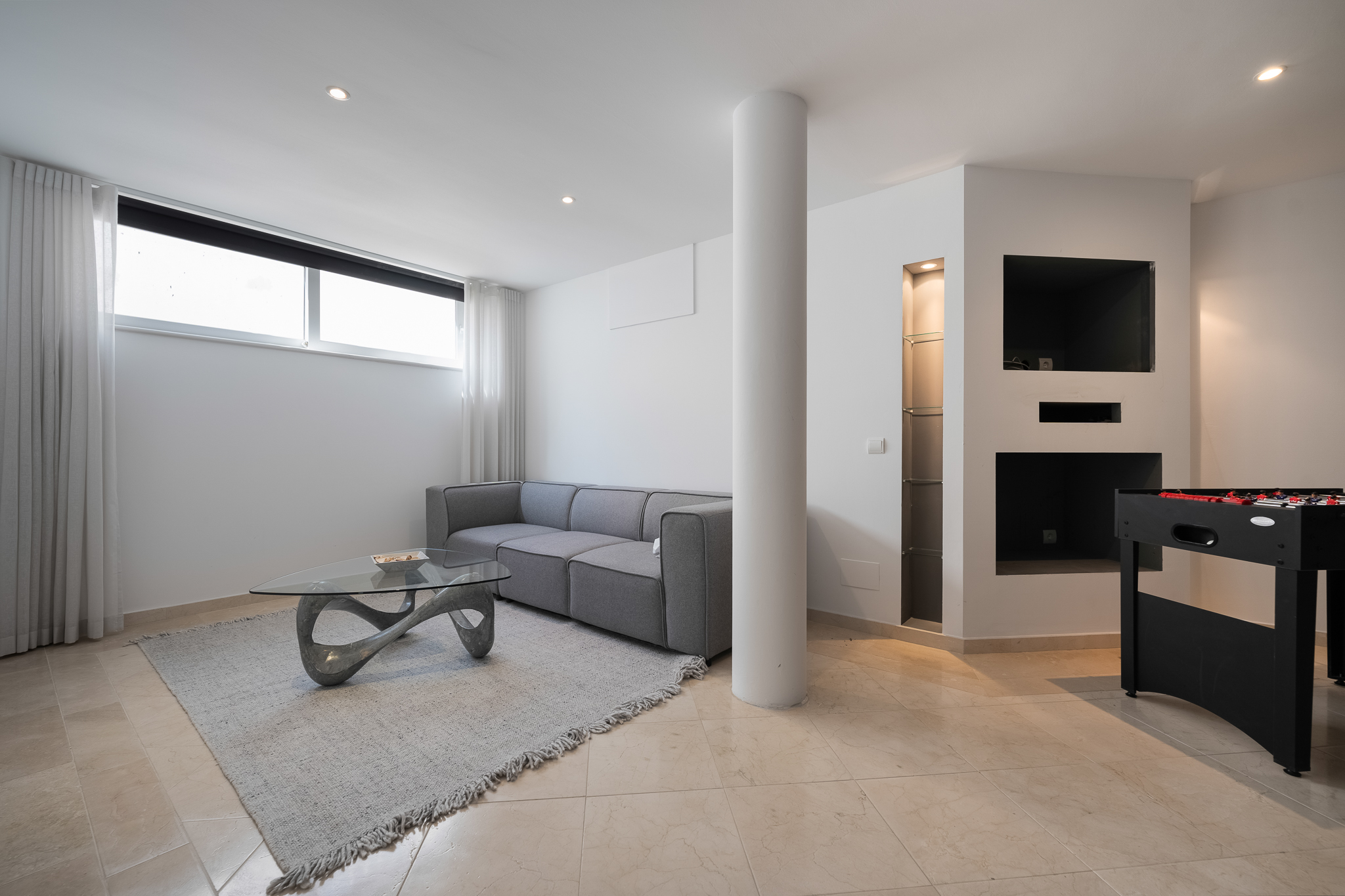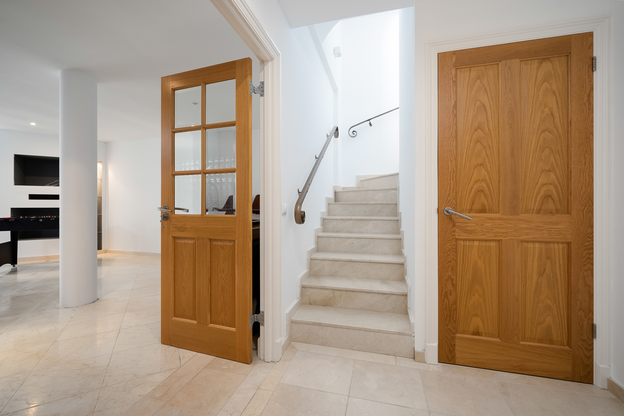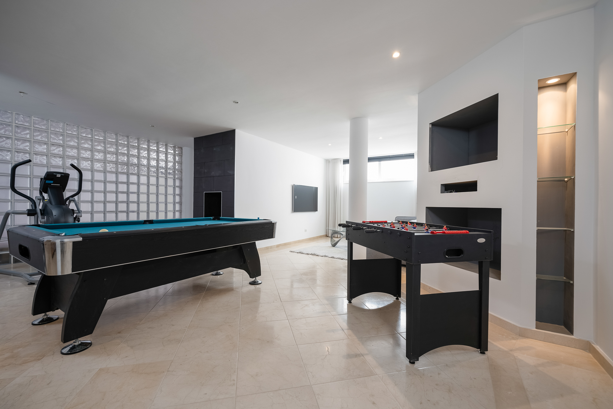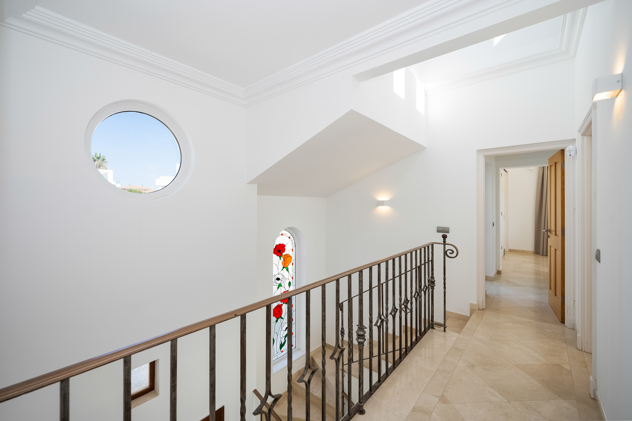 Partly refurbished 7 bedroom villa in Nueva Andalucia. This villa is conveniently located on a cul de sac road, just around the corner from all amenities. Only a 2-minute drive to Los Naranjos Golf Club, and a few minutes drive to many other golf courses in Nueva Andalucia. When you enter, you’ll find a refurbished, modern kitchen with a separate laundry room, a bright and airy dining and living area with large windows, and access to the terrace, pool, and garden area which is perfect for outdoor dining. A guest bedroom and bathroom are also located on the ground floor, with direct access to the patio. One floor up you will find 3 bedrooms, all with their own bathroom. From all the bedrooms you can enter the large terrace that faces west and offers breathtaking views of the mountains and partly the sea. On the lower level, there are 3 guest bedrooms and two bathrooms. There is also a large space which is currently used as a gym/game/cinema which you can transform into anything you wish. There is also a garage on this level where you can fit one car