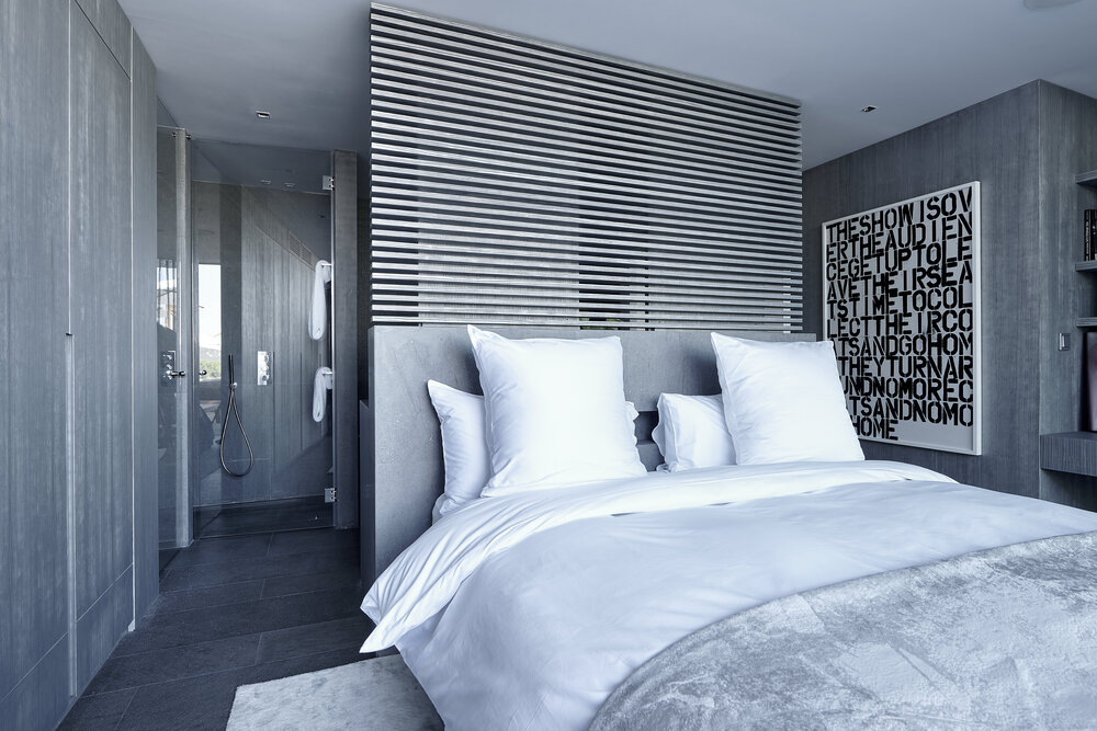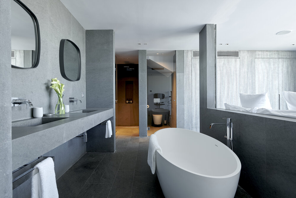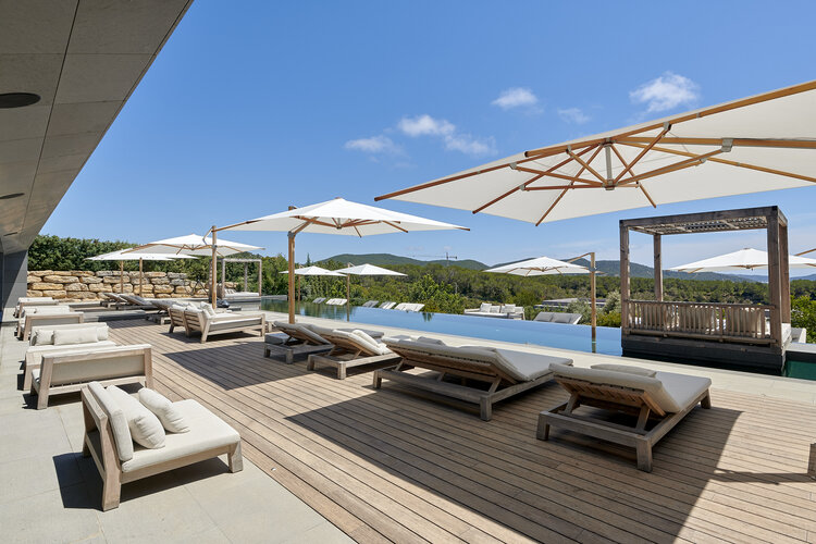 Techincal: top floor, king-size bed, remote iPad control system, safe box, TV, AC, blackout blinds, bathtub, indoor&outdoor experience shower, double sink & Japanese toilet, walk-in closet. Terrace 1 with lounge sofas and table, terrace 2 with tanning beds.