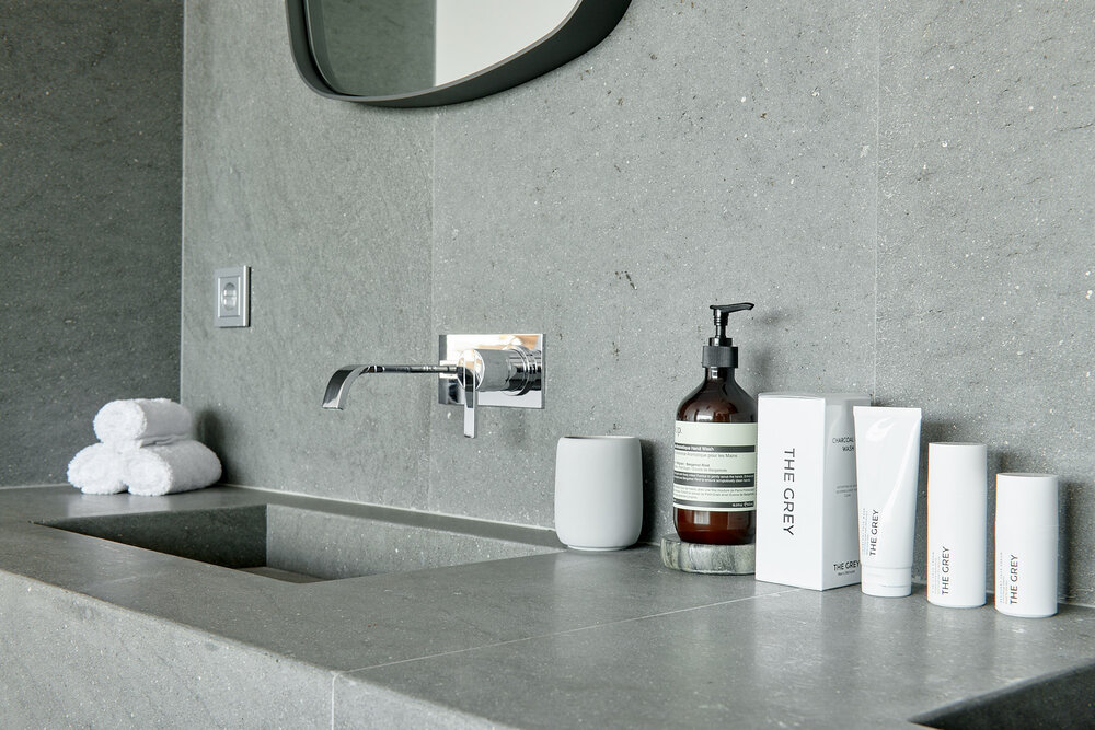 King shared bathroom with Bedroom 4 (bathtub & double sink & shower), safe box, AC, blackout blinds, opens up to swimming pool area with stunning views to nature and sea- Ground floor