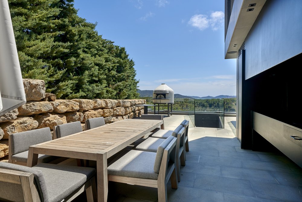 The main floor exterior space is composed of a Chill-Out Lounge, Dining Area and a fully equipped BBQ space with it’s own Neapolitan wood-fired pizza oven, overlooking the tremendous territory with it’s pool and tanning area, gardens and second house.