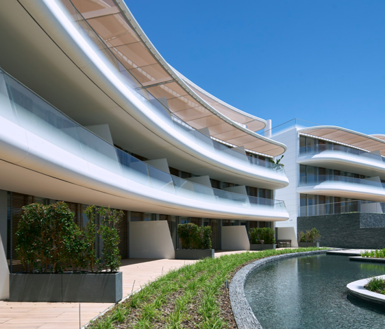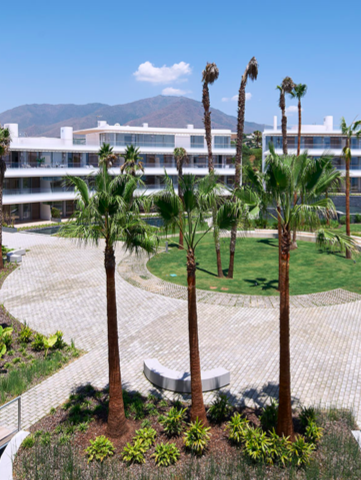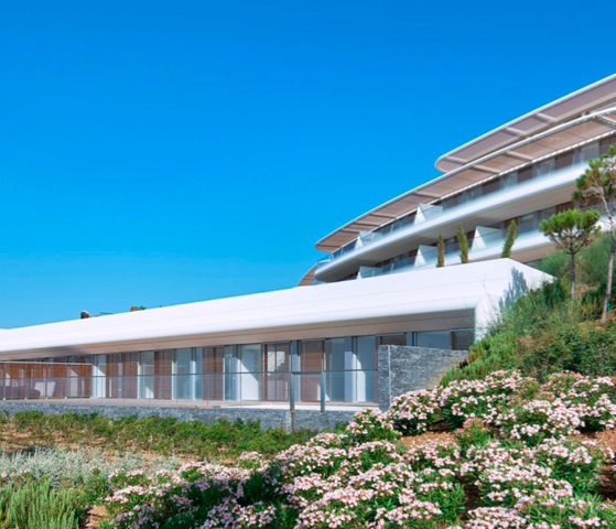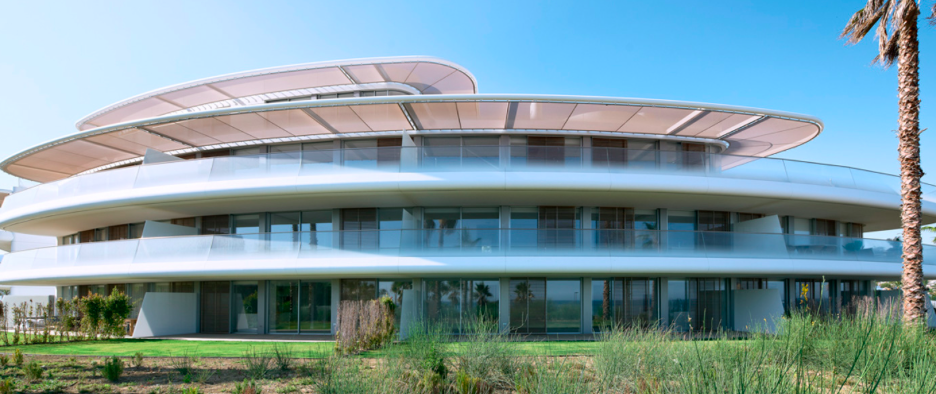 This project occupies a privileged position on the Estepona coastline. Its spectacular gardens and pools merge with the sand of the beach and create a habitat of its own. A harmonious and fluid set whose organic lines remind us of the contour of the waves, the lines of the wind on the dunes, or the profile of the coast when it meets the sea.