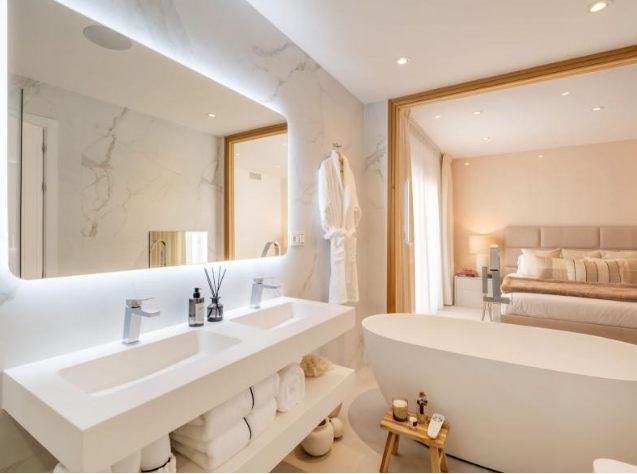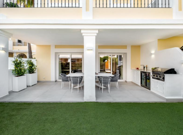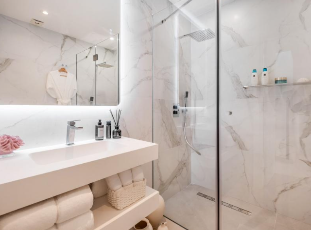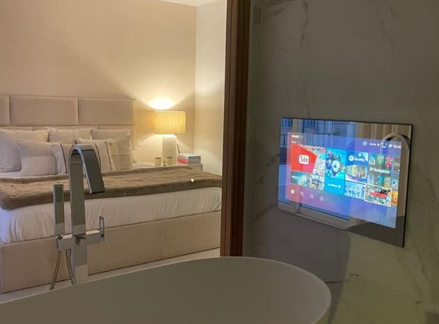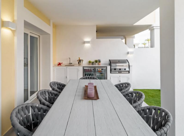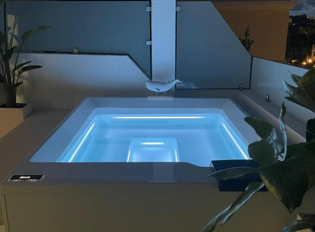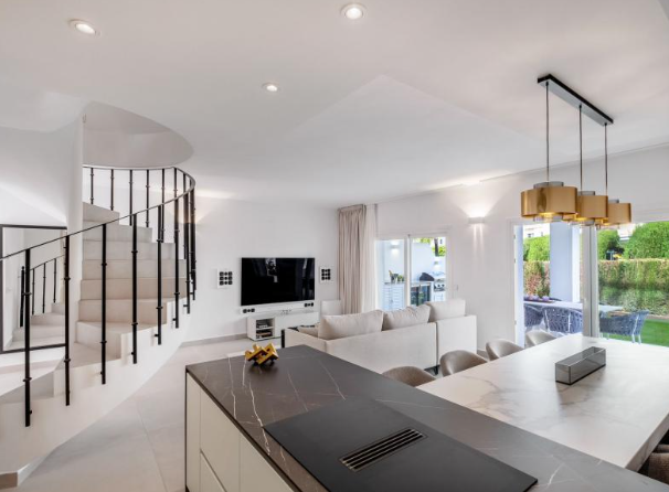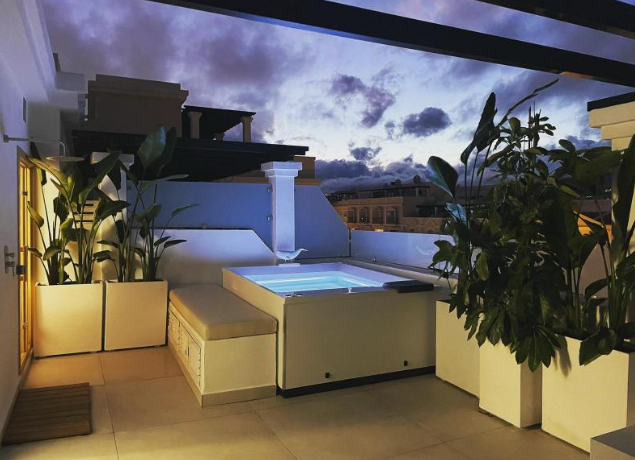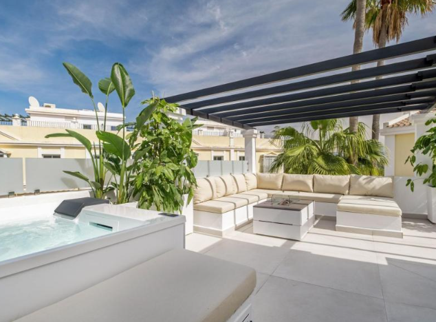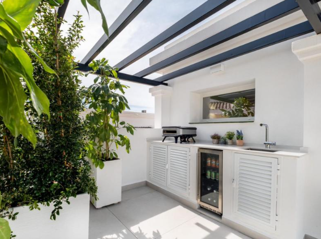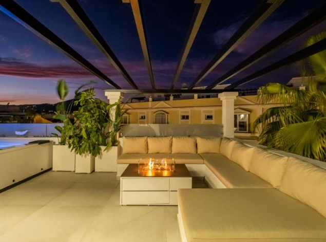 Step outside to your private haven – a rooftop terrace boasting a Jacuzzi and sauna. This space is an oasis of relaxation and entertainment, complete with a large living area for al fresco enjoyment. Convenience is key, with shops, schools, and amenities just a stone’s throw away. The allure of Marbella, the Port of Banus, and a nearby golf course enhances the lifestyle appeal.